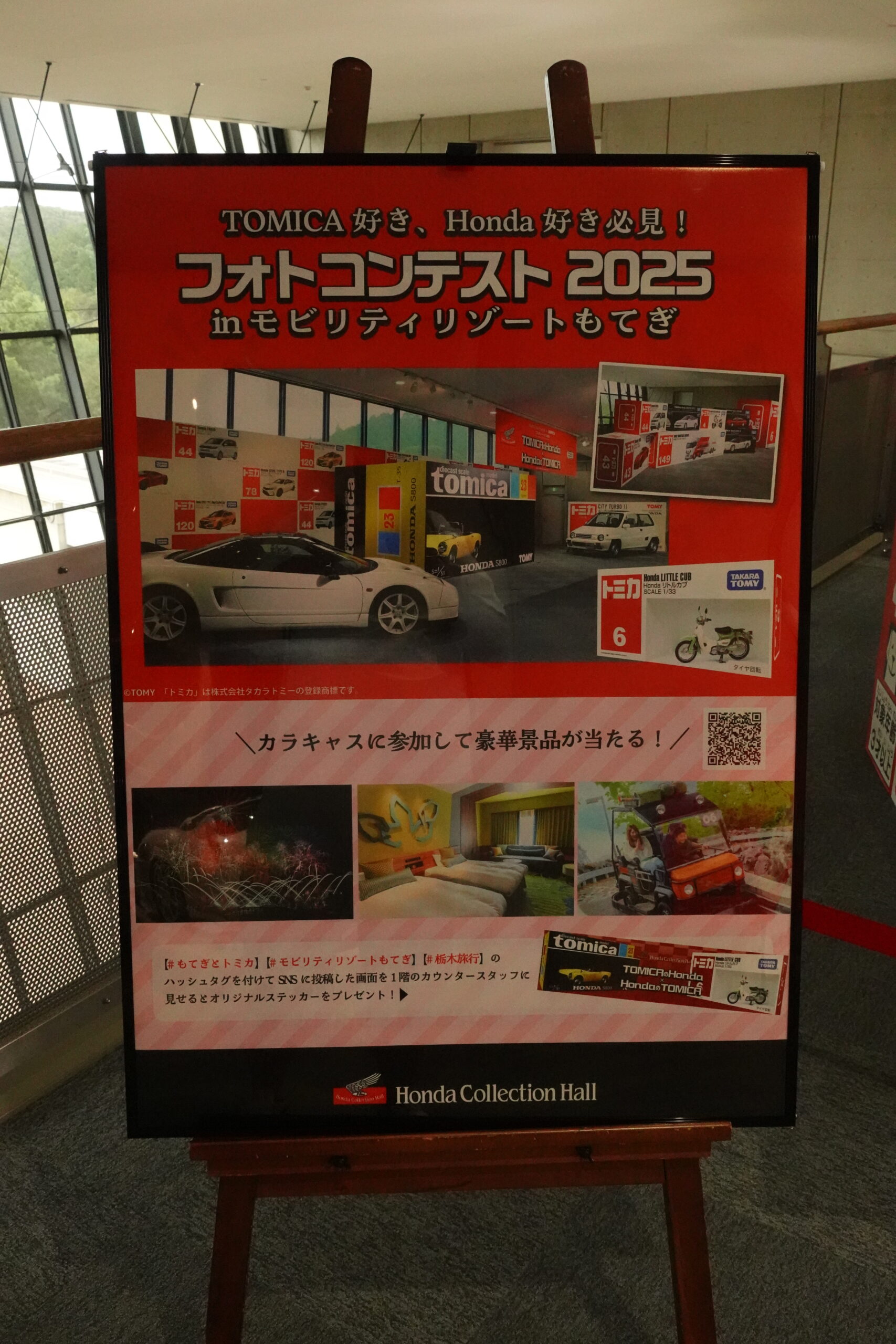 モビリーティーリゾートMOTEGIでは7月5日~10月19日までホンダコレクションホールとトミカのコラボレーション展示が開催されており、3階に上がると目の前に見えます。